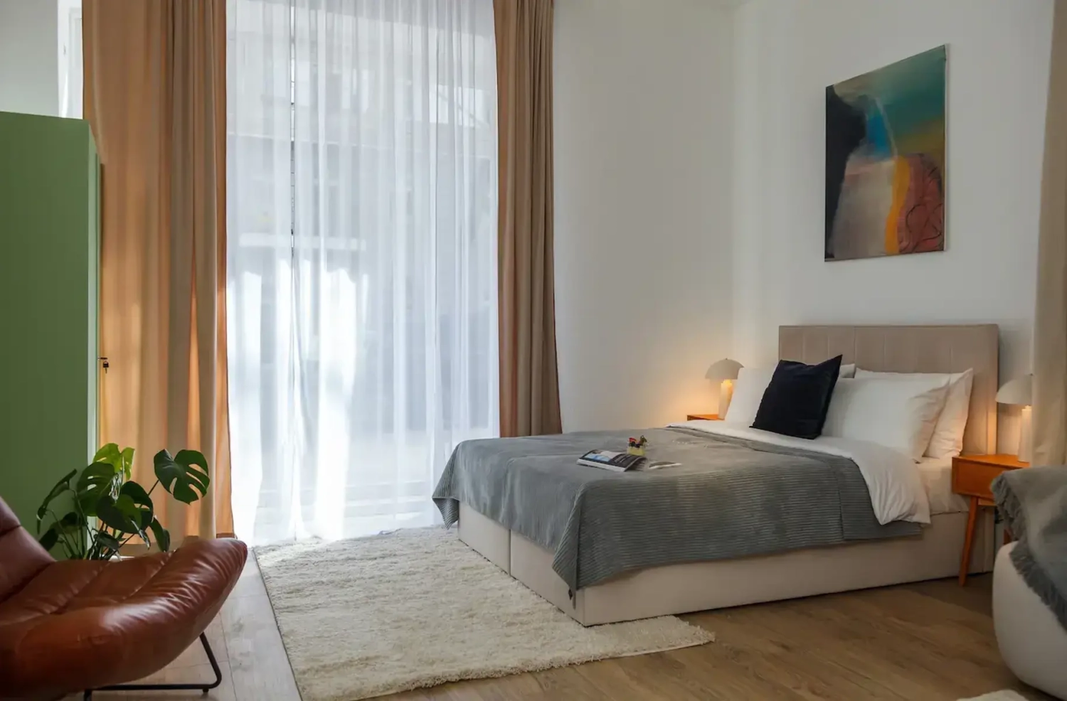 Il est composé de 2 belles chambres, d'un très grand séjour de 30,96 m2 (carrez) offrant 2 belles ouvertures sur la terrasse de 10,58 m² parfaitement orientée Sud-Ouest.