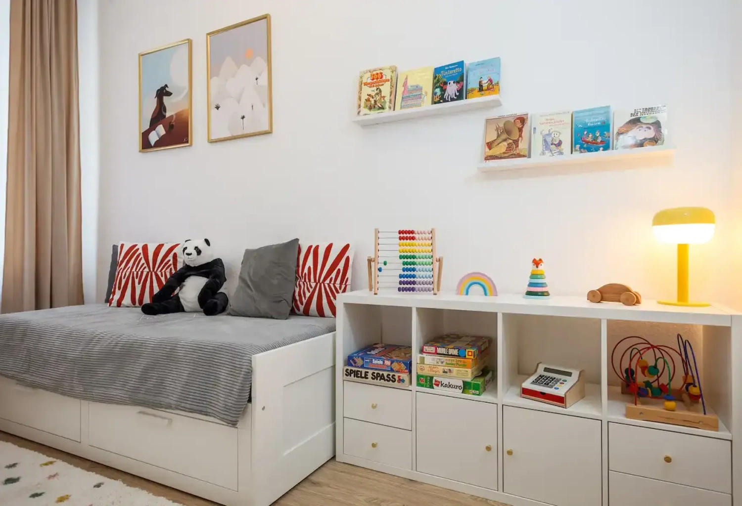 L’ensemble des pièces sont distribuées via un couloir équipé d’un grand dressing toute hauteur intégrée.
