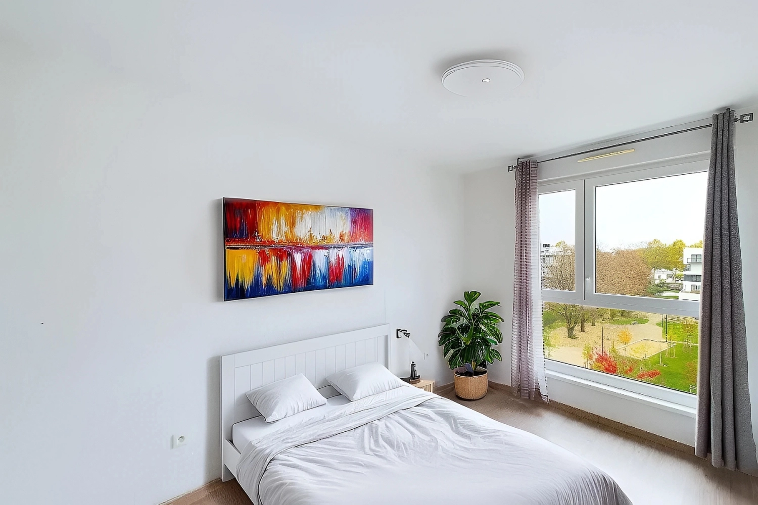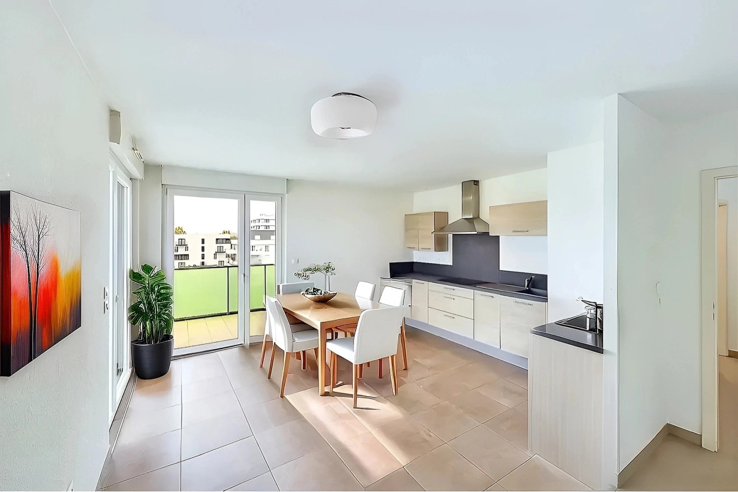 Ce bien est récent et ne nécessite que quelques rafraîchissements légers. Les prestations du bien sont agréables : chauffage au sol, digicode et vidéophone, volets roulants électriques sur les baies vitrées, carrelage et parquet stratifié.