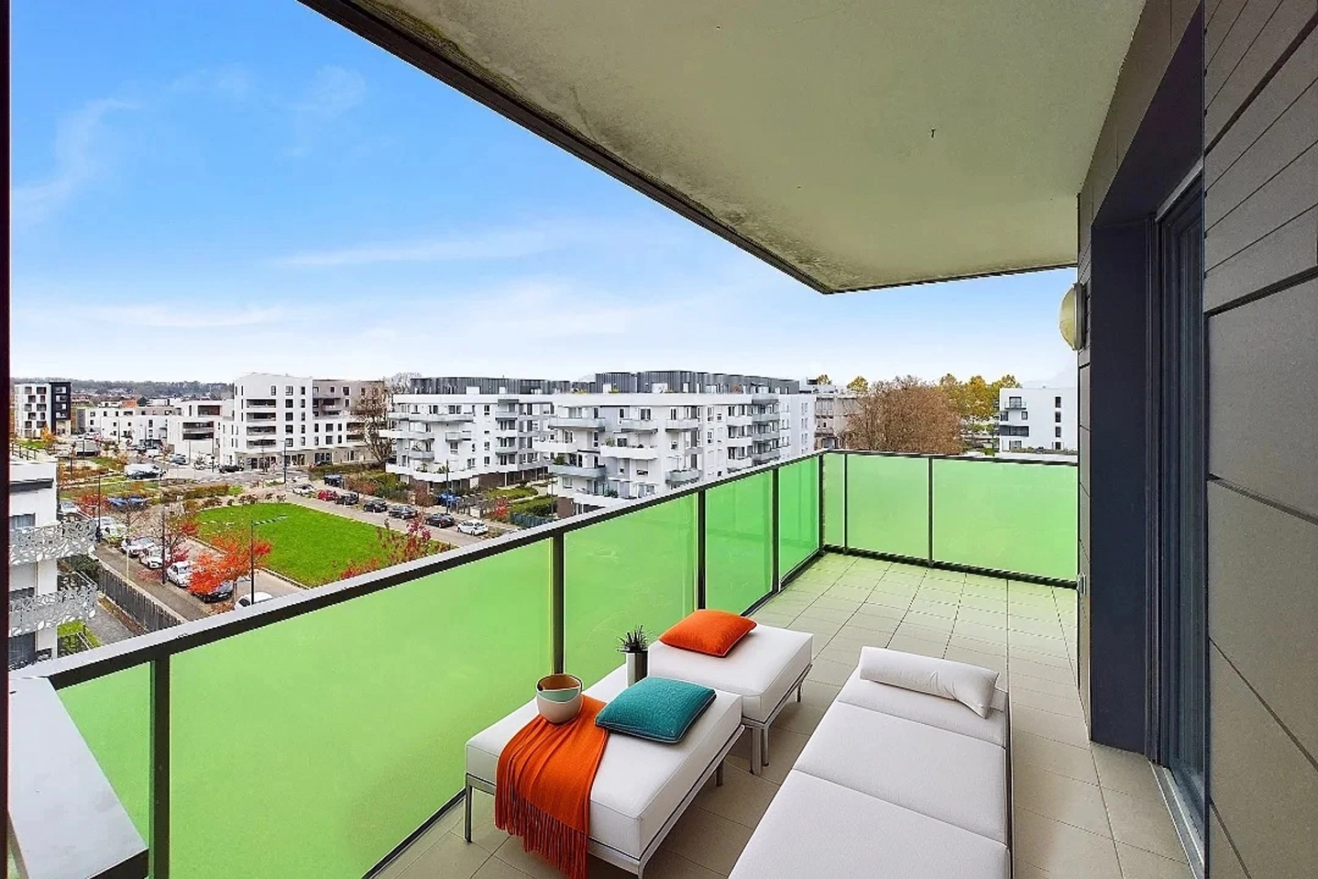 Offrant 2 belles ouvertures sur l’énorme terrasse de 18,45 m² (carrez), ce véritable prolongement de l’espace de vie orienté Est-Ouest vous permettra de profiter d’une belle luminosité et d’une vue très dégagée.