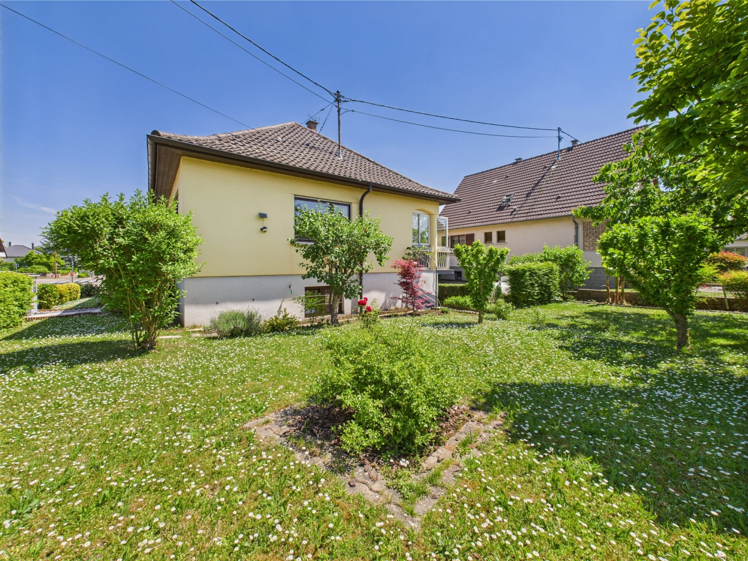 Située Rue du collège à Achenheim, découvrez ce beau pavillon des années 70 offrant une confortable parcelle de 5,33 ares avec un jardin arboré d’environ 240 m2.